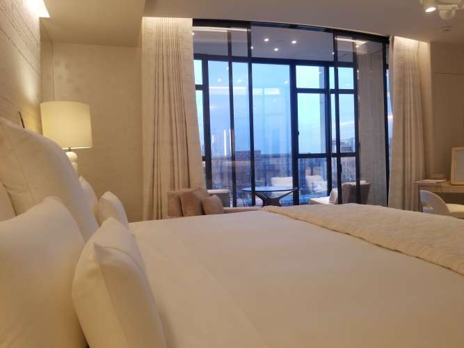 De grandes baies vitrées laissent la lumière inonder les pièces, des couleurs claires sublimées par des touches plus franches dans les détails des fauteuils ou des tableaux aux murs. Un stylé épuré, moderne, et contemporain, a l’unisson avec sa voisine, la Samaritaine.